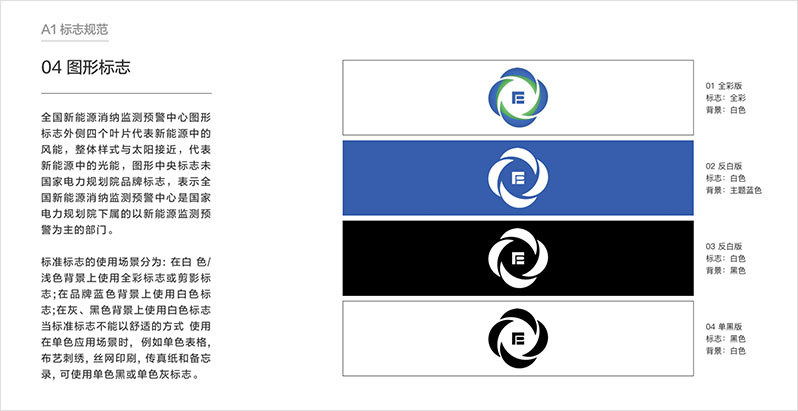制約新能源消納的關鍵因素,為新能源的優化布局和行業政策制定提供參考,促進我國新能源高質量發展。 藍藍設計對全國新能源消納監測預警中心的工作范圍做了調查研究,首先理解業務和核心競爭力,之后調查了行業相關品牌標志設計,聽取了大家的期望,之后設計出多版logo供選擇。標志設計確定后進行了VI和宣傳冊的設計。