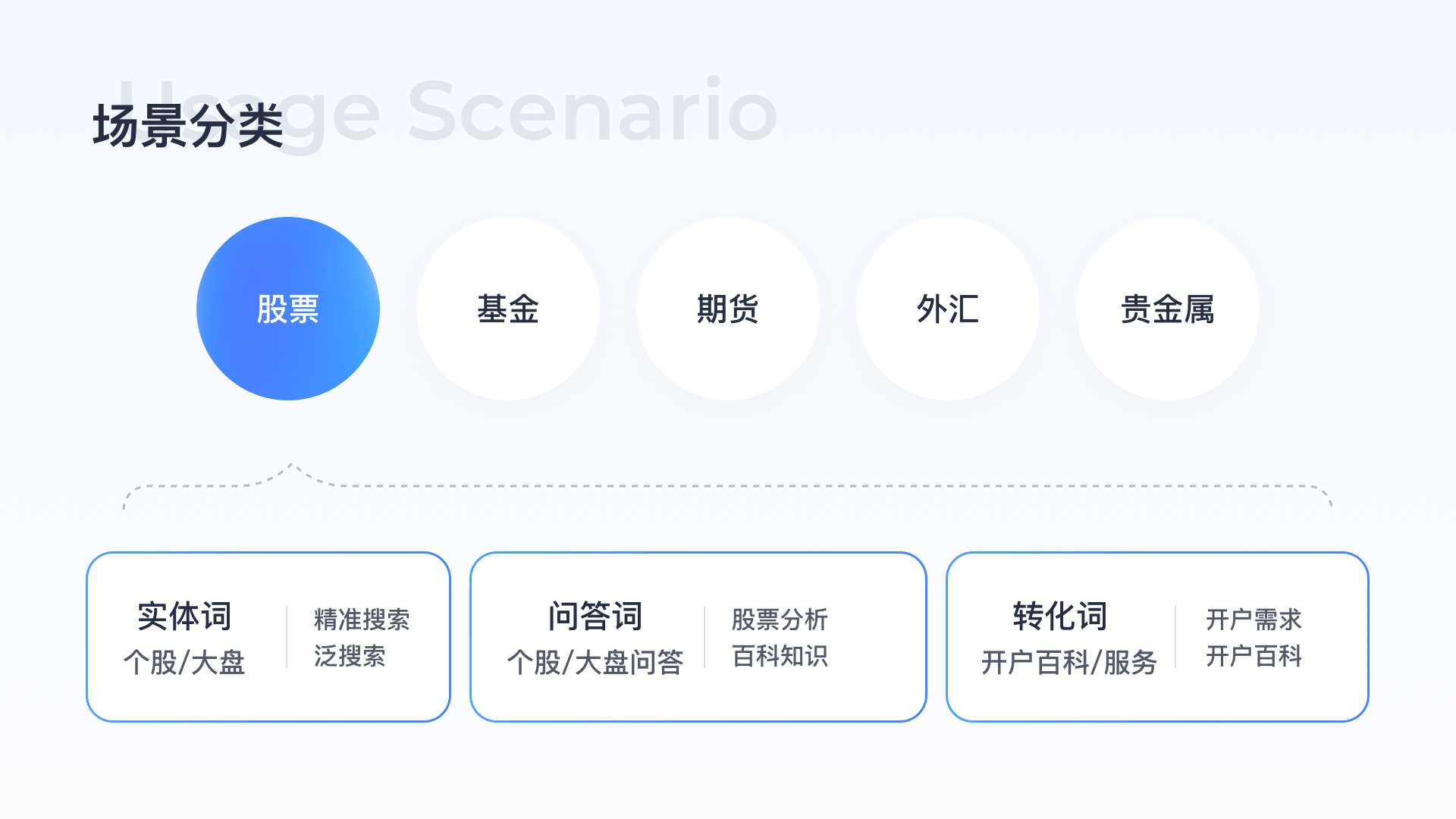 典型搜索詞:如大盤行情、今日股市動態等大盤泛搜索詞。