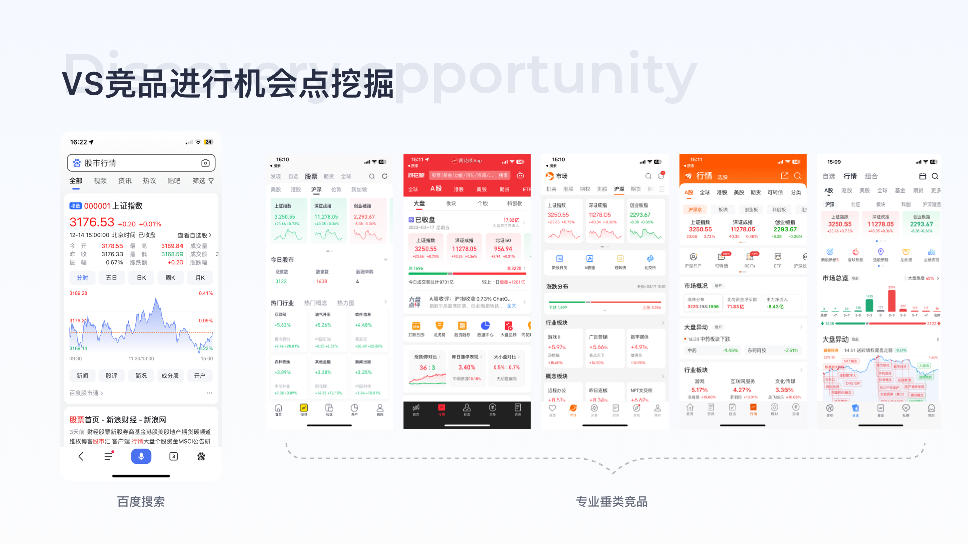 設計優化思路:結合競品優劣勢可得出,需要在提高信息豐富度的同時,考慮小白用戶的入門成本,用更可視化及簡潔的設計語言輔助用戶快速獲取有效需求信息。