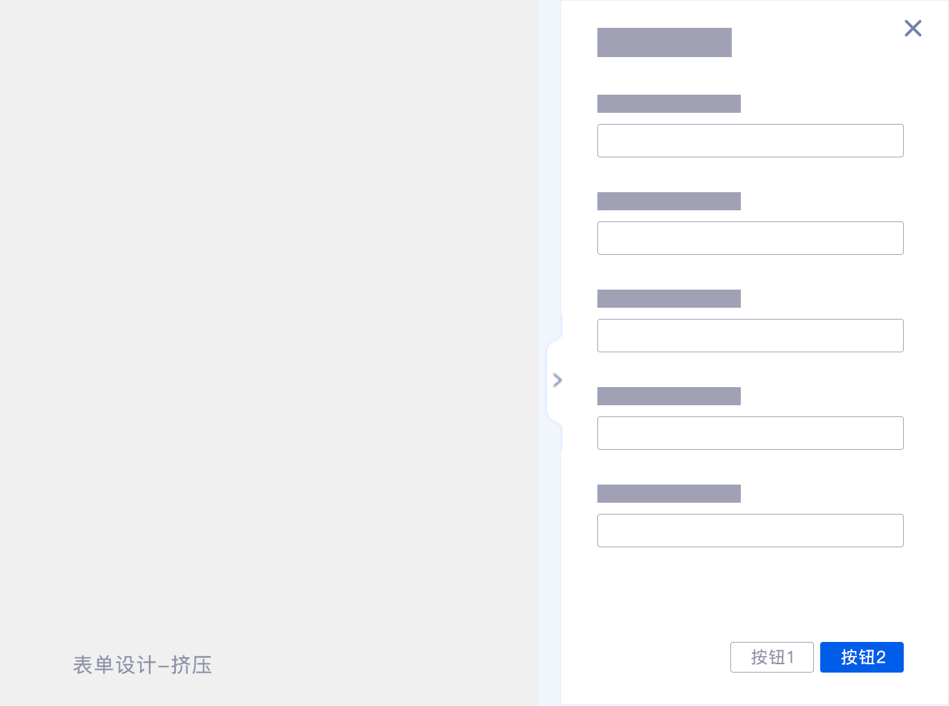 但是對于表單信息龐大且復(fù)雜的業(yè)務(wù)情況就不太適用于右側(cè)擠壓的模式,因?yàn)楸韱螌挾日紦?jù)太多會(huì)影響原本界面內(nèi)容的展示,原本內(nèi)容會(huì)因?yàn)閷挾葏^(qū)域太小而布局錯(cuò)亂的問題,如果因?yàn)橛覀?cè)擠壓的表單出現(xiàn)而改變原有界面內(nèi)容的布局,對于用戶而言使用也不太友好。