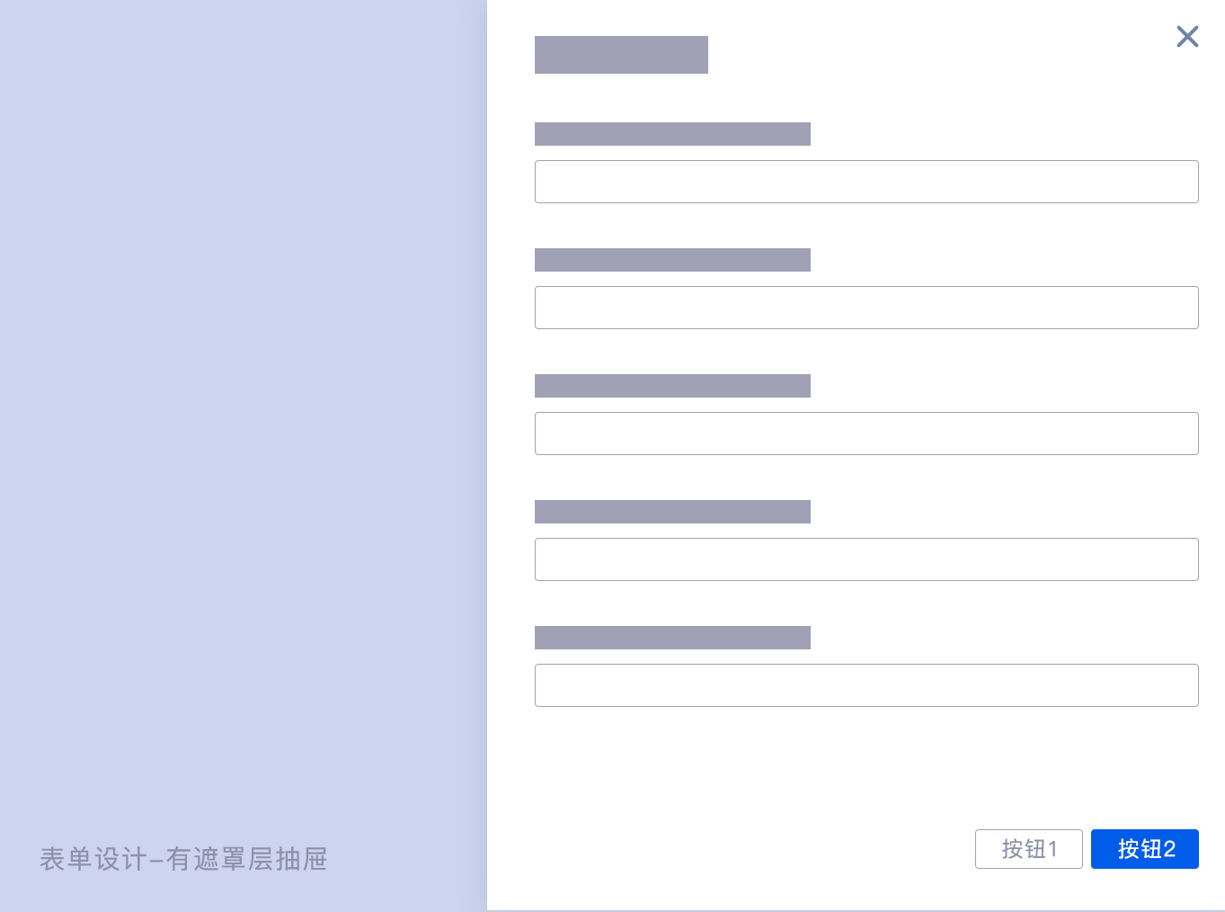 抽屜形式的表單展示方式是從屏幕右側(cè)彈出,有時(shí)候也會(huì)有從底部彈出的情況。這里主要分享從右側(cè)彈出的抽屜表單模式,抽屜模式還分為三種模式:有遮罩層的抽屜模式、無遮罩層的抽屜模式、擠壓模式。