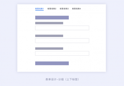復(fù)雜的表單可以采用區(qū)域分組的形式,還可以采用標(biāo)簽分組的設(shè)計(jì)形式。標(biāo)簽分組可以一眼看全所有分組大類信息,對于一個(gè)表單涉及到多種信息字段的情況,并且每個(gè)組的字段信息都是獨(dú)立的,不是強(qiáng)相關(guān)的,那么我們就可以采用標(biāo)簽分組的形式。