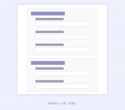 在B端設(shè)計(jì)中,一些復(fù)雜的表單會(huì)通過區(qū)域分組的形式排版設(shè)計(jì),可以將一個(gè)表單的信息通過信息的關(guān)聯(lián)關(guān)系劃分不同的區(qū)域形成小組信息,這樣有利于信息的歸類以及信息的填寫。用戶在看到復(fù)雜表單的時(shí)候不會(huì)被龐大的表單迷惑,可以更好的找到表單字段,也可以讓用戶填寫表單更有秩序、更清晰。區(qū)域分組的使用場景,一般也是針對復(fù)雜表單且具有強(qiáng)相關(guān)的信息關(guān)系。