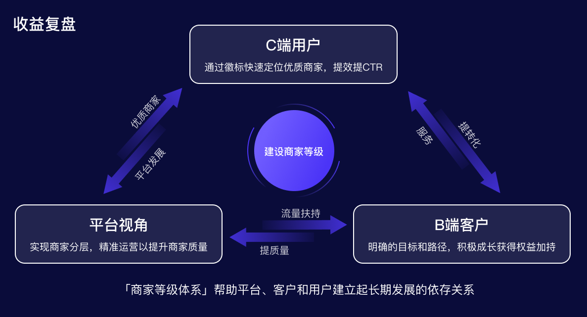 本文主要介紹了百度商業生態下的商家等級體系的設計思路。以商家為切入,通過視效引導等舉措吸引商家參與,為用戶提供更好的服務,實現平臺生態的正向發展,助力平臺-客戶-用戶的三方飛輪正向運轉。