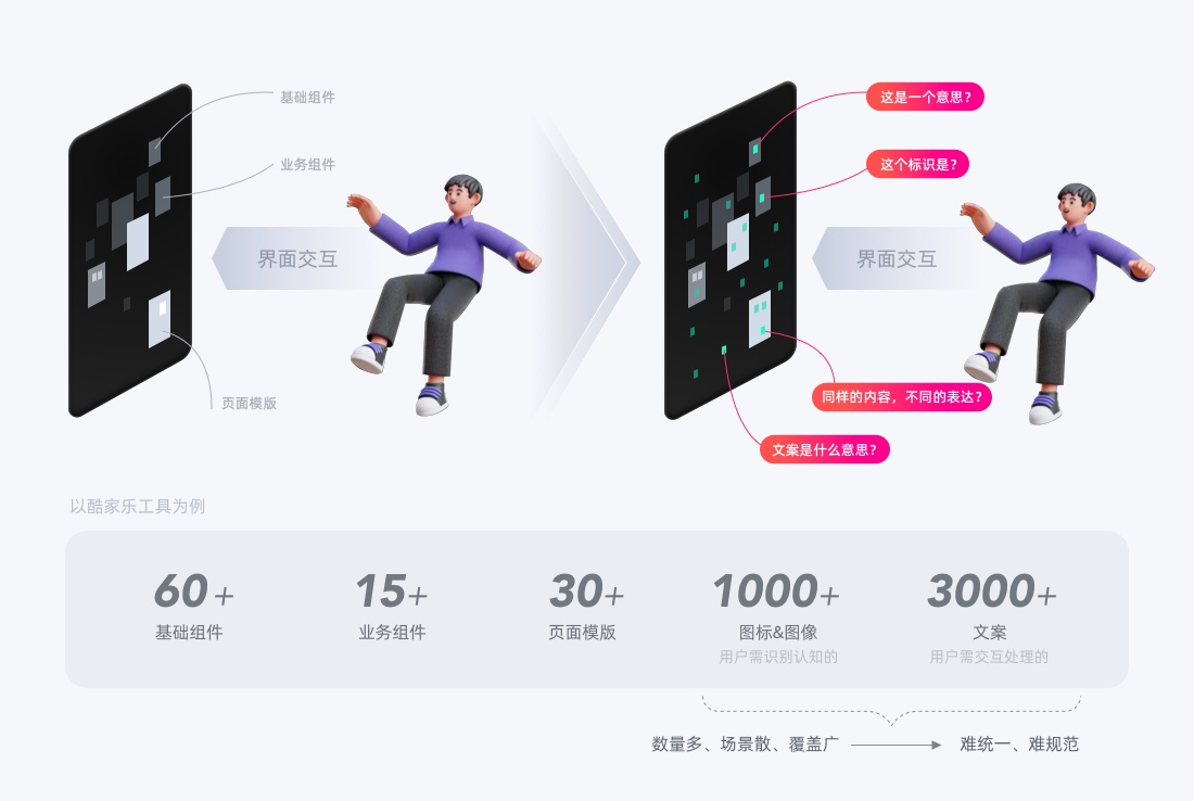 群核UED搭建設計規范體系已有多年,即便有相對豐富和完整的設計體系,我們呈現給用戶交互界面仍有體驗不一致、操作難理解、同一對象不同表達的問題,為什么?