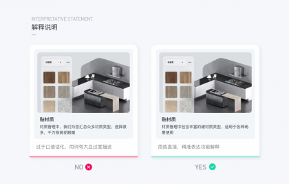 在界面交互中,文案作為信息傳遞的載體,占據(jù)的比重是最大的,在群核的產(chǎn)品中,我們規(guī)范了文案的表達(dá)提升信息表達(dá)的精準(zhǔn)度,之前有針對工具文案做了梳理。