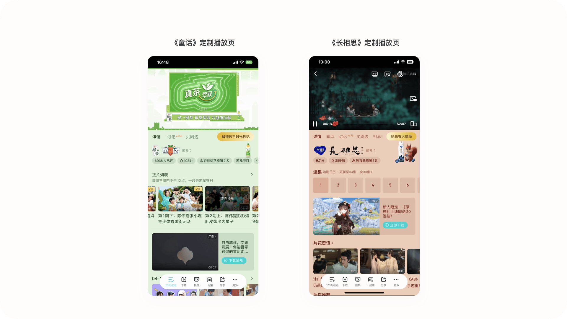 3.1.1設(shè)計亮點:定制化的視頻播放器對于熱門的內(nèi)容,騰訊視頻依然會定制化頁面,給予專屬的配色與標(biāo)題,給用戶提供更加沉浸的氛圍感