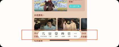 3.1.2產(chǎn)品亮點:底部操作區(qū)功能相比其他產(chǎn)品,騰訊視頻在進(jìn)入豎屏播放頁后不會再頂部的視頻中默認(rèn)展示操作內(nèi)容,給用戶帶來更好的觀看體驗,并且把視頻相關(guān)的操作內(nèi)容放置底部做成一個底部操作區(qū),用戶可以在底部快速的對視頻進(jìn)行操作如:下載、投屏、一起看、分享等。而不是把功能分散在界面中,這樣不僅可以降低用戶的尋找這些高頻操作的成本,同時提升視頻的觀看體驗。
