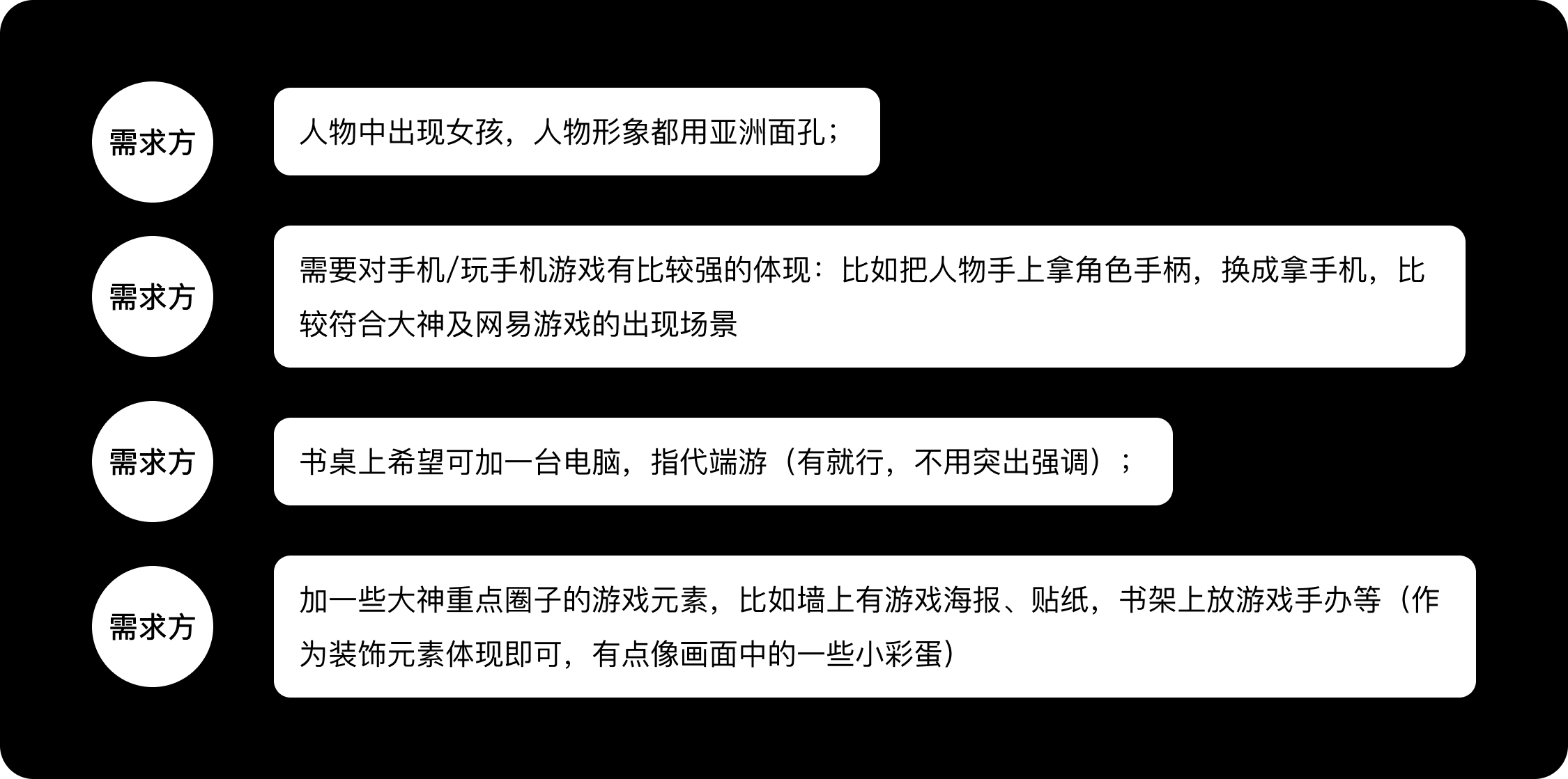 需求方希望畫面能展現出品牌的社交感,以“游戲伙伴”為主題,畫面表達各種不同類型游戲伙伴,因我們的產品而相聚的場景。同時希望畫面中的人物能做出擊掌(GIVE ME 5)的動作,以此呼應品牌發布會的主題。