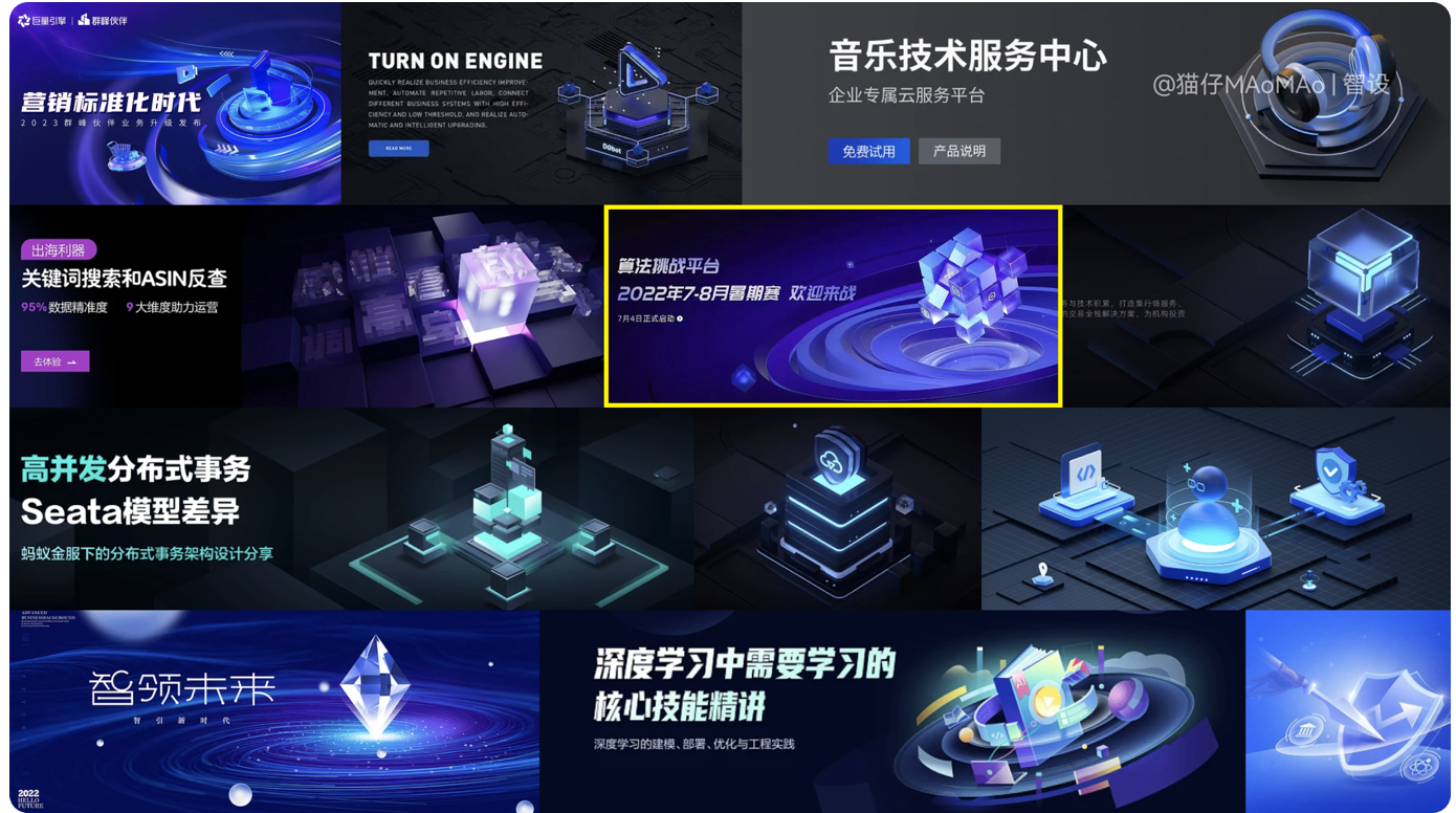 一般我們生成B端視覺,都是banner組圖等,不是單張出現,想要保持風格不變的同時,主題內容不同,只需要更改主體關鍵詞即可實現,最終我們就得到了下圖需要的所有主視覺元素。