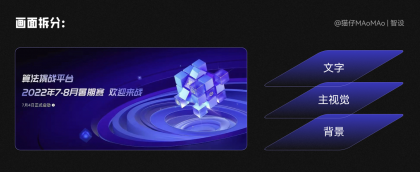 確定參考方向后,腦袋里面大致有了畫面思路,主視覺在畫面右方,螺旋狀背景突出主視覺,文字排版在左邊,整體色調為藍色+青色光感。這里我們對所選參考圖進行拆分:
