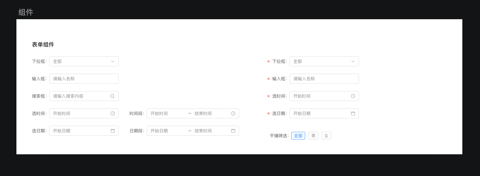 對(duì)表單頁(yè)的模塊,布局進(jìn)行一些場(chǎng)景提取,通過(guò)對(duì)基礎(chǔ)組件的內(nèi)容拼接形成區(qū)塊化高級(jí)組件,表格組件化,實(shí)現(xiàn)自適應(yīng)、可填充,提高組內(nèi)協(xié)作。
