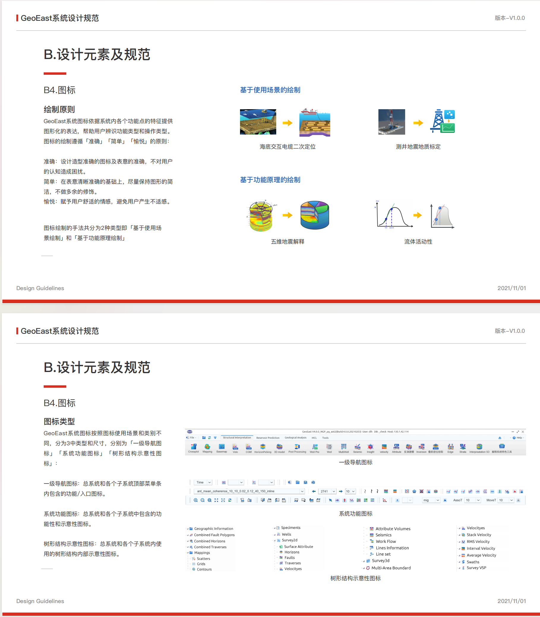 下圖是藍藍設計給中國石油設計界面和圖標后,制定的UI規范。