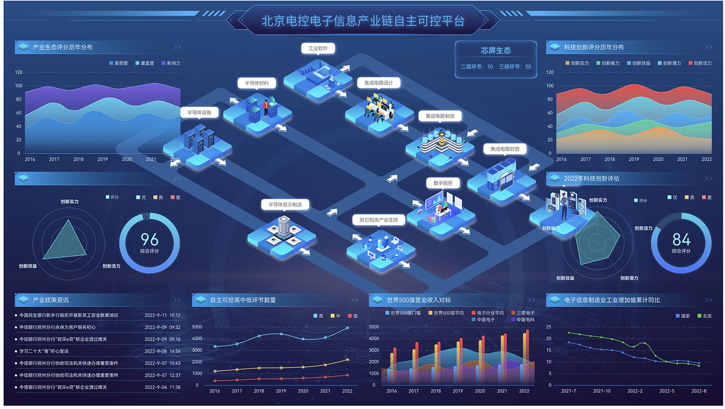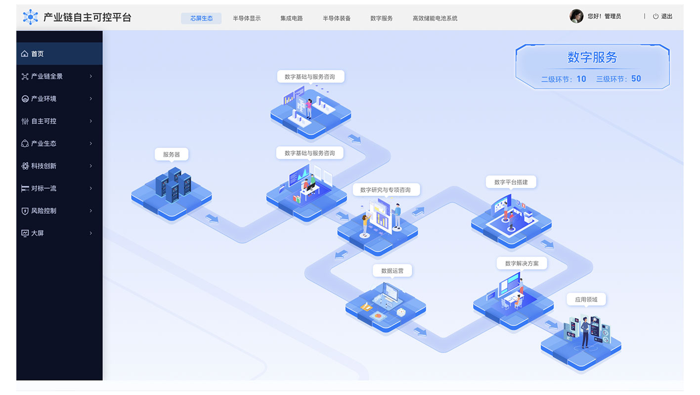 項(xiàng)目背景:產(chǎn)業(yè)鏈自主可控平臺是指一個(gè)集成了多方參與者的平臺,旨在實(shí)現(xiàn)對整個(gè)產(chǎn)業(yè)鏈的自主控制和管理。該平臺通過整合各個(gè)環(huán)節(jié)的資源、技術(shù)和信息,以實(shí)現(xiàn)產(chǎn)業(yè)鏈的協(xié)同發(fā)展和自主創(chuàng)新。過建立產(chǎn)業(yè)鏈自主可控平臺,可以促進(jìn)各參與者間的協(xié)同合作,加強(qiáng)產(chǎn)業(yè)鏈的自主控制能力,提高整體競爭力和創(chuàng)新能力,實(shí)現(xiàn)更加可持續(xù)和穩(wěn)定的發(fā)展。蘭亭妙微團(tuán)隊(duì)首先設(shè)計(jì)了一套高度定制化的動態(tài)數(shù)據(jù)可視化儀表板。