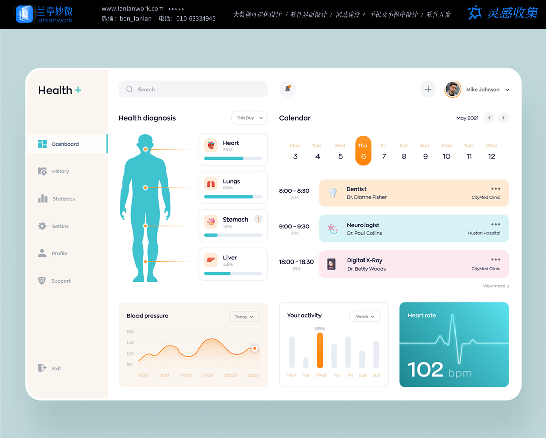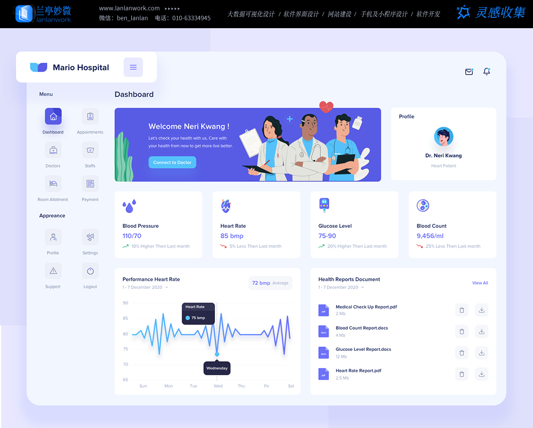 色彩不僅僅是視覺上的裝飾,更是一種能夠喚起情感和情緒反應的強大工具。在醫療 UI 設計中,合理運用色彩心理學原理尤為重要。例如,柔和的淺藍色常常被用于醫療界面,因為它能傳達出寧靜、信任與安心之感,有助于緩解患者在面對疾病和就醫過程中的緊張焦慮情緒。而綠色系則與自然、生機相聯系,在一些康復類醫療應用的界面設計中適當融入,能夠激發患者對康復的希望和信心。相反,過于鮮艷或刺眼的顏色則應謹慎使用,以免引起患者的不適或煩躁。通過精心挑選和搭配色彩,醫療 UI 能夠在患者打開應用或瀏覽網頁的瞬間,就為他們營造出一個適宜的情感氛圍,使他們在心理上更易于接受后續的就醫信息與服務。
