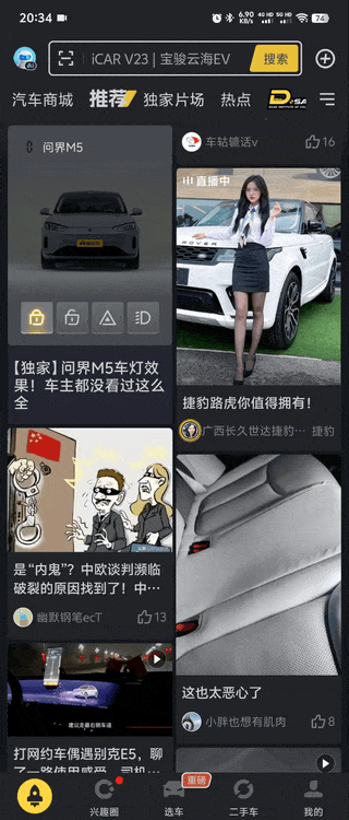 如今各大 APP 的信息流千篇一律,都是圖文、視頻、廣告的組合,用戶在不斷滑動中逐漸失去了新鮮感。懂車帝巧妙地為了推廣自家的在線 3D 看車功能,為信息流帶來了全新玩法!他們在首頁信息流中嵌入了可交互的 3D 汽車模型,這種既能觀看又能操作的創新形式,與傳統的圖文視頻形式形成鮮明對比,立即吸引了用戶的注意力,讓人忍不住想要嘗試。