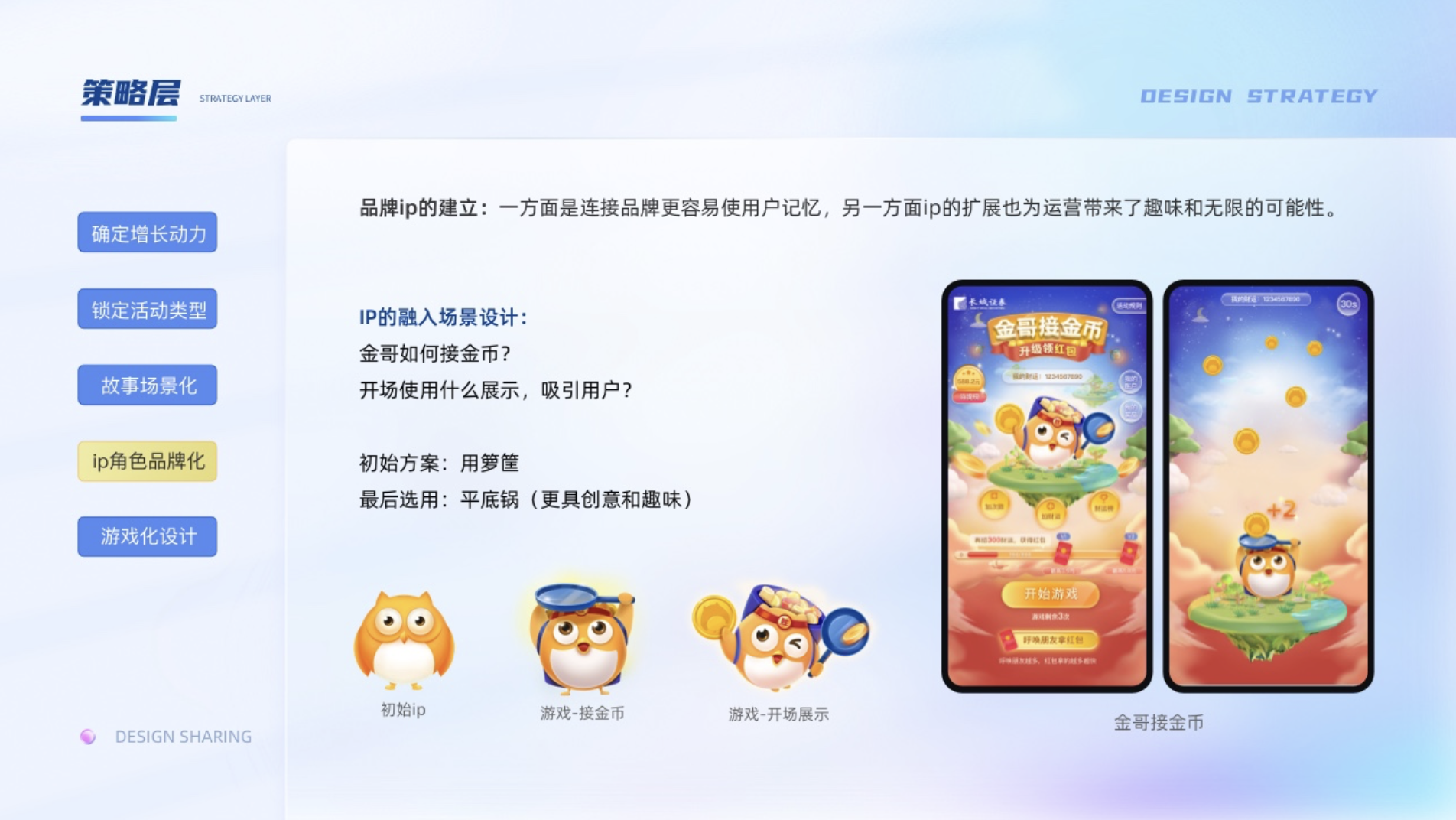 策略層:1、確定增長動力;2、鎖定活動類型;3、故事場景化;4、IP角色品牌化;5、游戲化設計