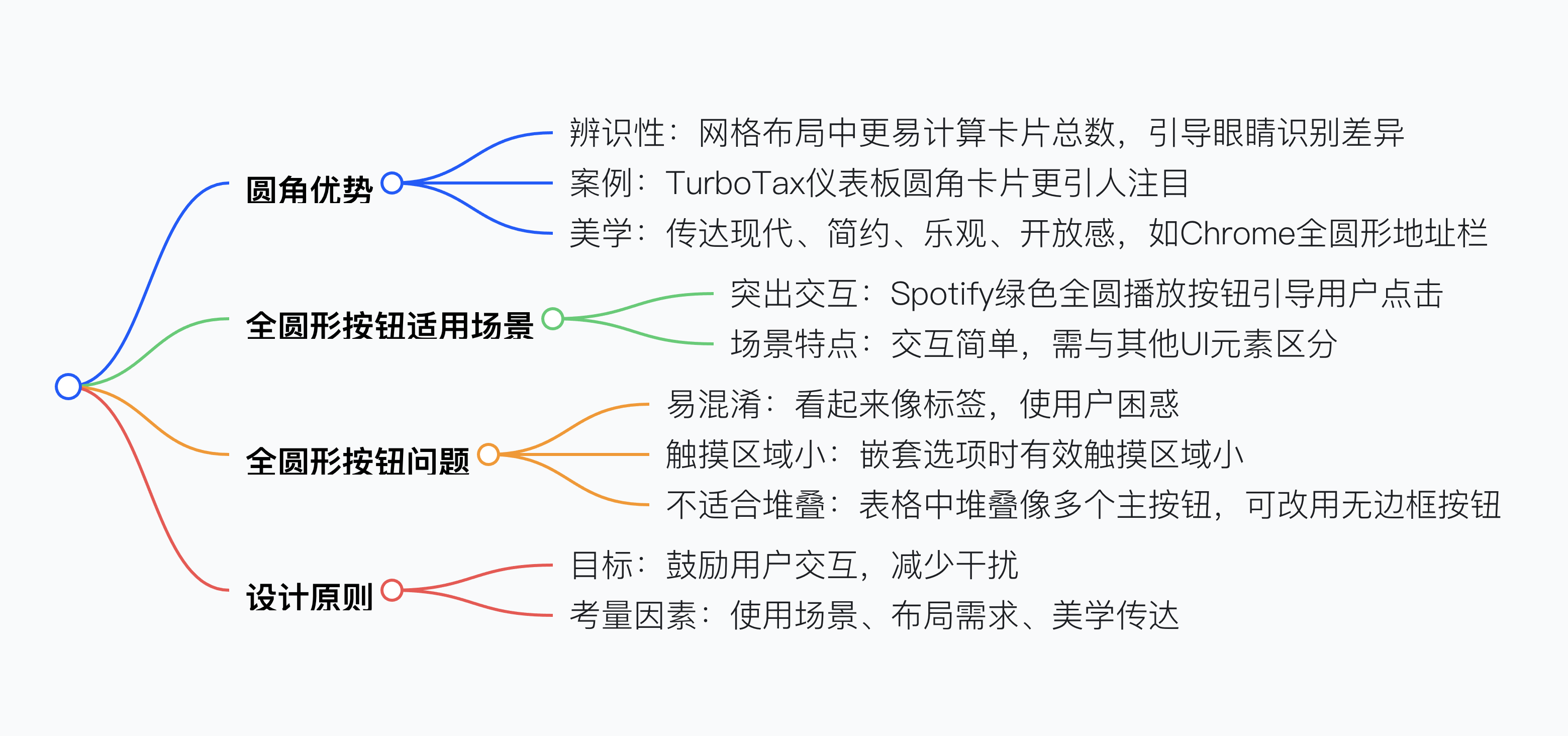UI 設計中按鈕用圓角還是直角需綜合考量,圓角在網格布局中更易辨識,如 TurboTax 儀表板中圓角卡片比尖角更引人注目,全圓形按鈕在 Spotify 中因突出交互引導成功,但全圓形按鈕可能被誤認標簽、嵌套選項觸摸區域小、不適合堆疊,而直角按鈕在表格等堆疊布局中更合適,此外圓角傳達現代、簡約等感覺,像 Chrome 瀏覽器更新為全圓形地址欄,總之設計需以鼓勵用戶交互、減少干擾為目標,而非單純選擇圓角或直角。