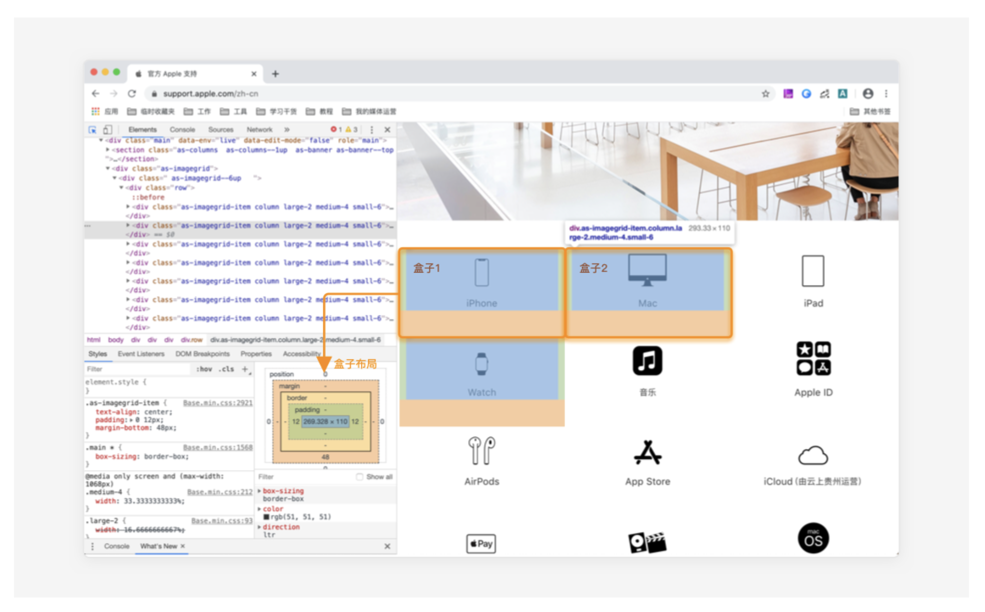 1. 定義:界面中每個元素視為矩形盒子,有樣式屬性(邊距、描邊、填充等)和與其他盒子的位置關系(上下左右及包含關系),前端通過代碼將元素裝進盒子再定位。