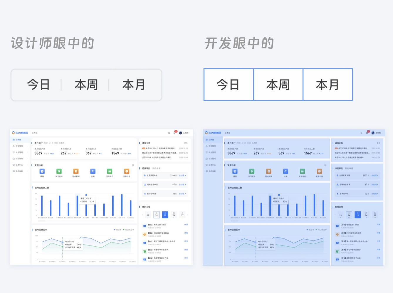 - 明確元素結(jié)構(gòu)和尺寸:清晰劃分元素各組成部分,便于還原設(shè)計(jì)稿中的元素結(jié)構(gòu)和尺寸。