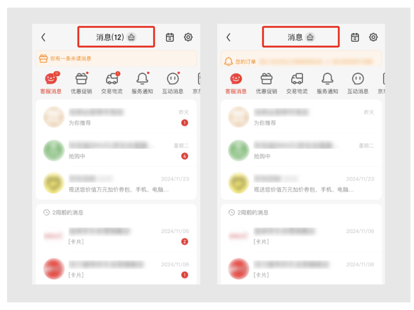 拼多多、京東、美團這類 APP,未讀消息大多是促銷、物流、商家群發,即時性強但 “長期價值低”。比如拼多多的 “拼單成功通知”、美團的 “優惠券過期提醒”,用戶看完一次就沒用了,攢多了只會占地方。