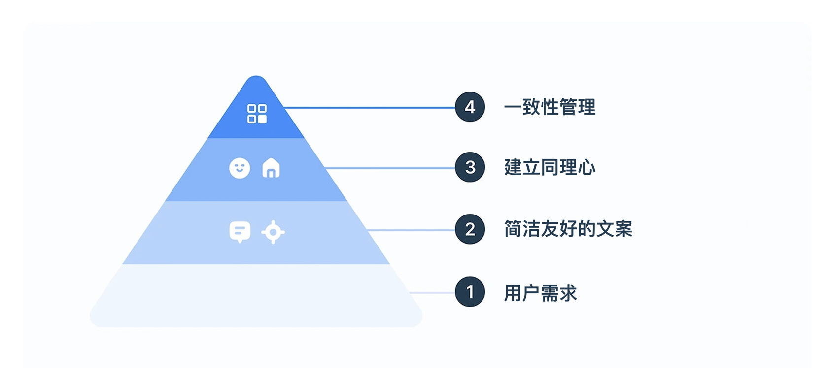 好的 UX 文案需要融合五個核心要素,且有明確的優先級層次,就像搭建一座房子,基礎不牢,再華麗的裝飾也沒用: