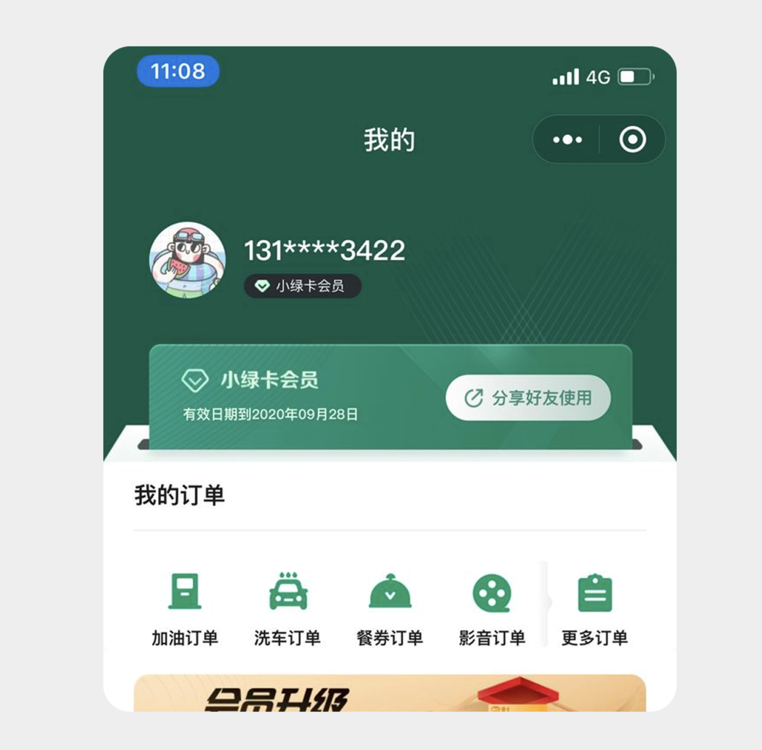 會員卡設計通過擬物思路,打造出了兼具趣味與層次感的視覺效果。頭部綠色背景與下方白色背景的交界處,特意設計成卡槽樣式,模擬物理卡片插入的真實體驗,讓虛擬會員身份有了觸摸得到的質感。
