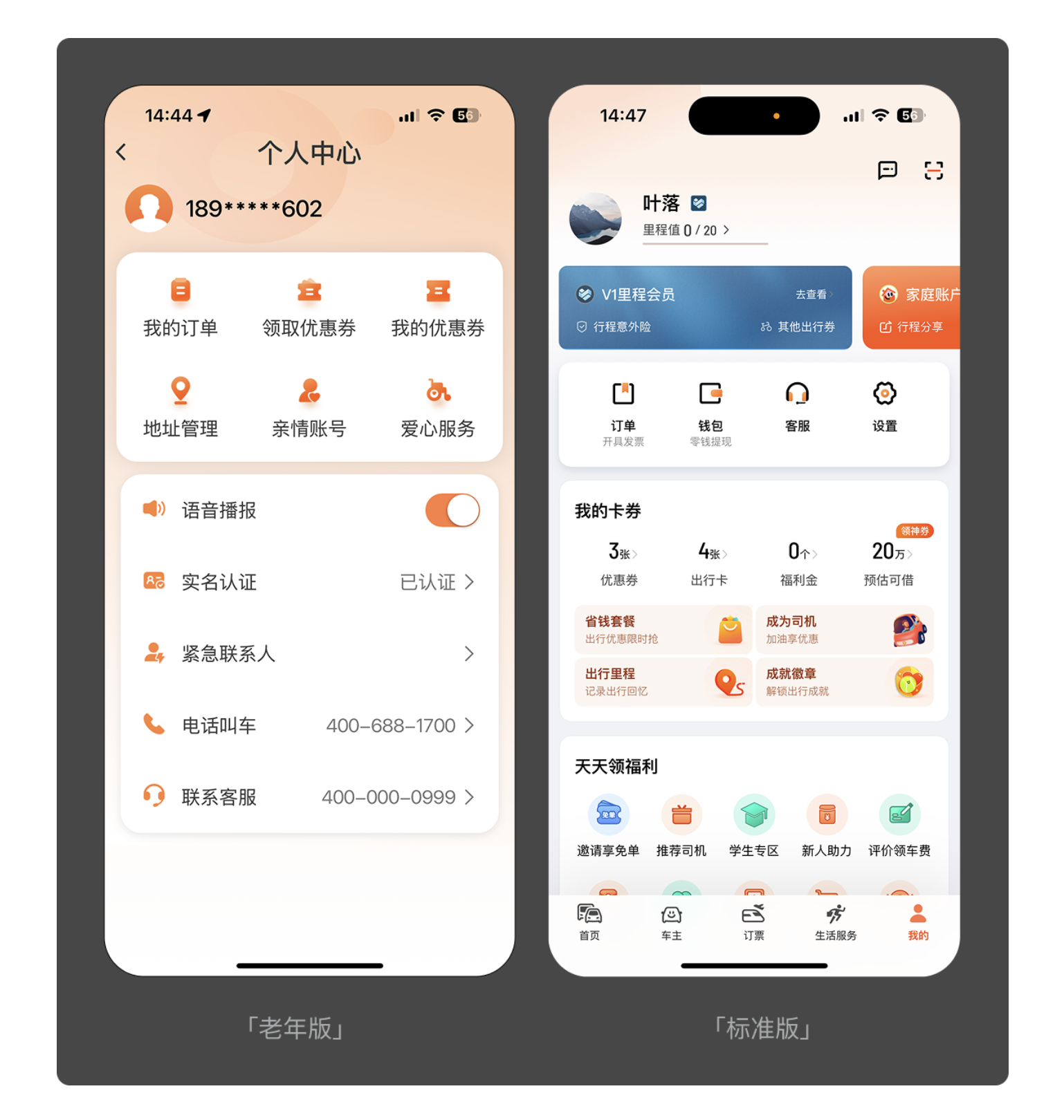 對老年人而言,多余的操作步驟就是無形的門檻。優(yōu)秀的適老化設(shè)計(jì)會(huì)砍掉非必要功能,讓核心需求一鍵直達(dá)。滴滴老年版便是典型案例:標(biāo)準(zhǔn)版需要先輸入目的地再點(diǎn)擊叫車,而老年版直接在首頁設(shè)置 “呼叫出租車” 大按鈕,省去輸入環(huán)節(jié),讓用戶無需學(xué)習(xí)就能完成叫車。QQ 老年版同樣簡化了動(dòng)態(tài)查看流程,標(biāo)準(zhǔn)版需兩次點(diǎn)擊才能進(jìn)入的頁面,老年版一次點(diǎn)擊即可直達(dá),大幅提升操作效率。