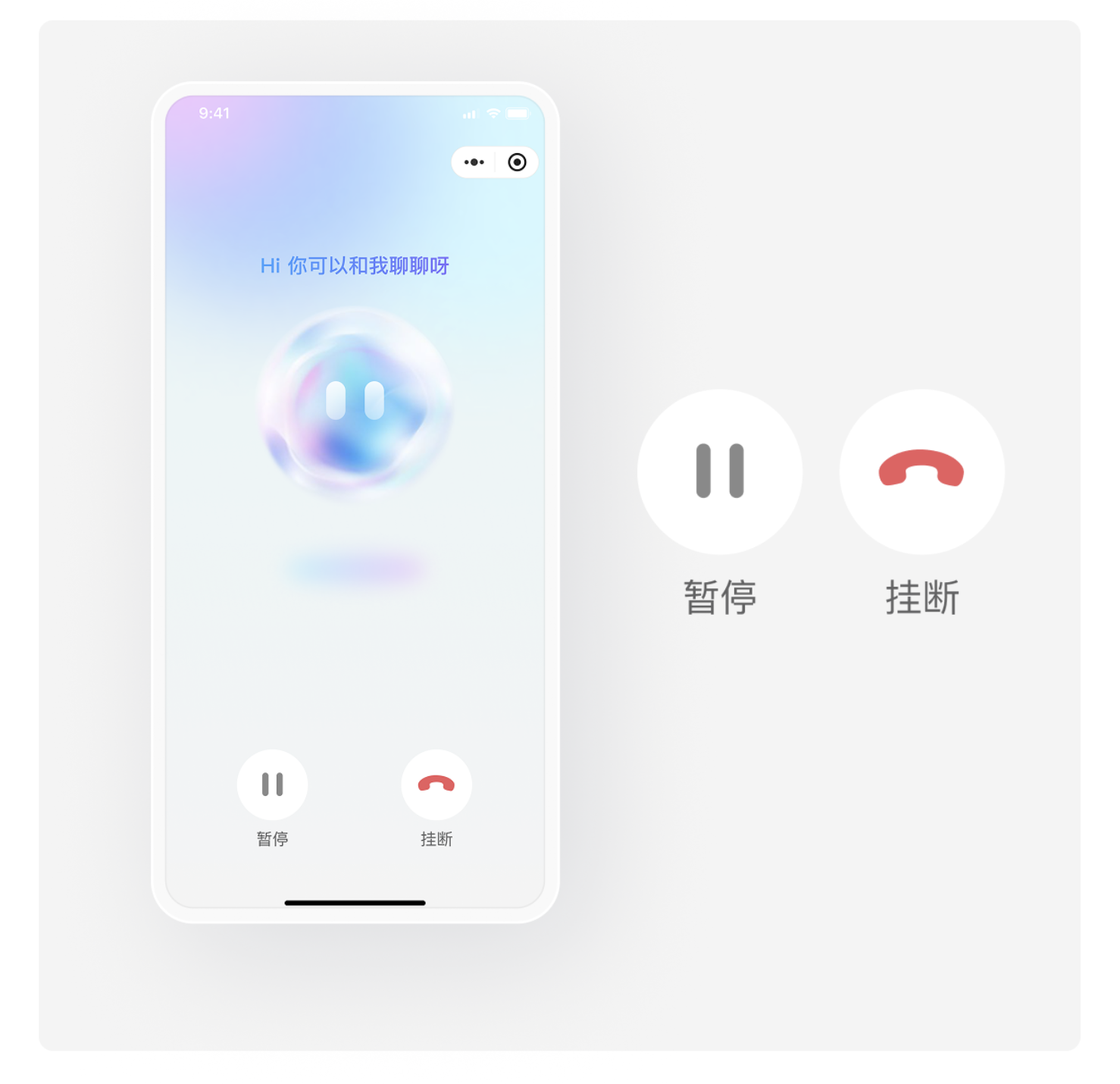 - 元素統一:檢查按鈕圖標風格,避免線性圖標(如暫停的雙豎線)與面性圖標(如掛斷的電話圖形)混用。統一采用線性圖標,確保線條粗細一致,讓視覺風格更統一。