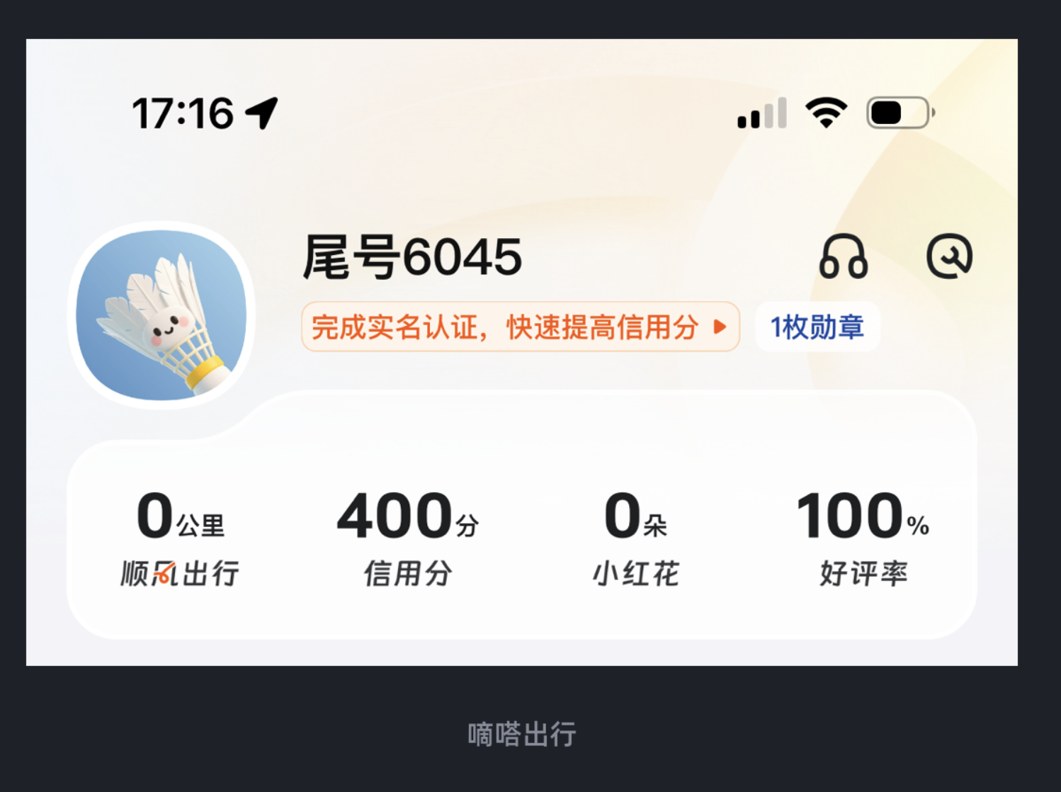 嘀嗒出行的個人中心設計就很有想法,它采用超橢圓造型打造頭像區域,同時讓卡片左上角做凹陷處理,剛好與超橢圓頭像形成視覺呼應。這種設計既突出了頭像這一核心元素,又巧妙填補了常規布局的負空間,避免了畫面的空洞感,讓整體結構更緊湊、造型更獨特,看似簡單的結構調整,卻讓整個個人中心的視覺體驗煥然一新。