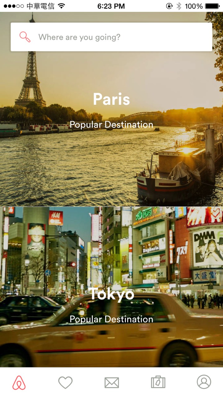 首先,品牌行銷必須要更加微型,例如:Airbnb 的品牌 Logo 就以一個不張揚的方式嵌在應用內。這是因為大家會來使用你的 App,就已經知道你的品牌,因此沒必要讓品牌 Logo 重複出現在螢幕之中。