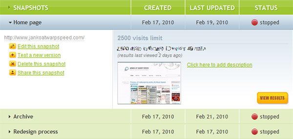 CrazyEgg應(yīng)用了整行選擇的方法展開(kāi)當(dāng)前選中行的詳情(稍后我們會(huì)談及該模式),鼠標(biāo)懸停的行會(huì)高亮顯示。我很喜歡他們對(duì)這塊區(qū)域以及其他的應(yīng)用的設(shè)計(jì)。