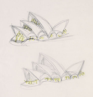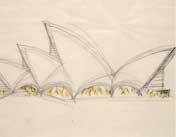 (Juon Utzon),在和家人旅行途中偶然看到了澳洲政府向海外征集悉尼歌劇院設計方案的廣告。他對遠在天邊的悉尼城根本一無所知,但是他從小生活在海濱漁村的 生活經歷,和與兩個來自澳大利亞的姑娘對悉尼的描述中獲取靈感,與其說是完成了一個建筑的設計方案,倒不如說是隨手畫了幾張潦草的速寫。甚至當他寄出自己 的設計方案時,他都沒有料到,又一個“安徒生式的童話”將要在南半球上演。 約翰·烏特松