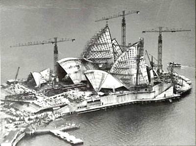 (Juon Utzon)潦草的圖畫。看到這個方案后他欣喜若狂,并力排眾議,不遺余力地在評委間進行了積極有效的游說工作,最終確立了其優勝地位。 1957年1月29日,悉尼N·S·W藝術館大廳里記者云集,評委會莊嚴宣布:約翰·烏特松的方案擊敗所有232個競爭對手,獲得第一名。設計方案一經公布,人們都為其獨具匠心的構思和超俗脫群的設計而贊嘆不已,據后來事態的發展看,大多數人也就是個隨聲附和。 歌劇院原址上的麥格理堡壘電車廠,于1958年開始被拆除,歌劇院建造的前期準備工作也于1959年3月份開始了。這個工程計劃共有三個階段:階段一(1959年–1963年)建造建筑的基礎矮墻;階段二(1963年–1967年)建造外部的“殼” 結構;階段三(1967年–1973年)內部的設計和裝潢。現在的當務之急是趕緊跟設計者聯系要圖紙吧,所有的人都不曾料到大麻煩才剛剛開始。當中標6個月后烏特松本人才知道自己的作品獲選: “圖紙?什么圖紙?我還沒有圖紙?”——澳大利亞人基本瘋了。 烏特松趕緊托人去找丹麥著名結構工程師艾拉普(Ove Arup),拜托這位貨真價實的建筑大師幫助他實現這個設計,并開始在丹麥所制作悉尼歌劇院的木制模型,這個模型和后來的最終建筑造型有不小的差別,當時它采用的是更為奔放的拋物線