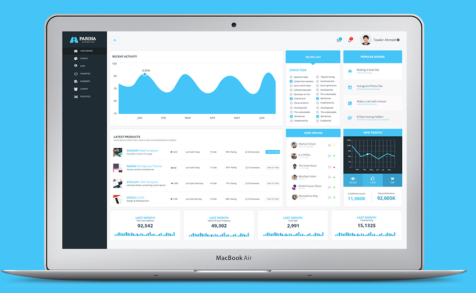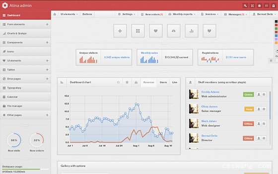 后臺管理軟件界面設計一:藍色經典的扁平風格。