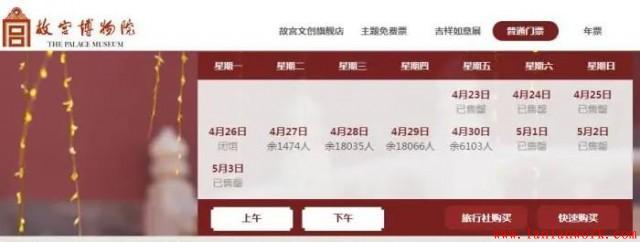 熱門景區門票售罄。記者4月23日登陸故宮網站發現,“五一”假期前三天(5月1日至5月3日)的故宮門票已經售罄。