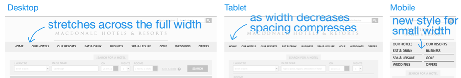 我們將使用一個真實的酒店網站 作為范例,來演示響應式Web設計的流程。這個網站是我們在九月份剛剛為Macdonald連鎖酒店創(chuàng)建的。在整個設計開發(fā)流程中,有幾個關鍵步驟,是我們接下來要逐一展開學習的: