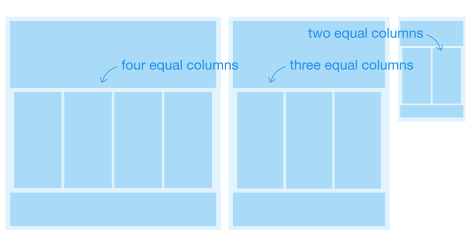 如上圖所示,從每列等寬的情況入手,可以讓規(guī)劃工作相對簡單一些,幫助我們將注意力放在響應式的布局改變上。