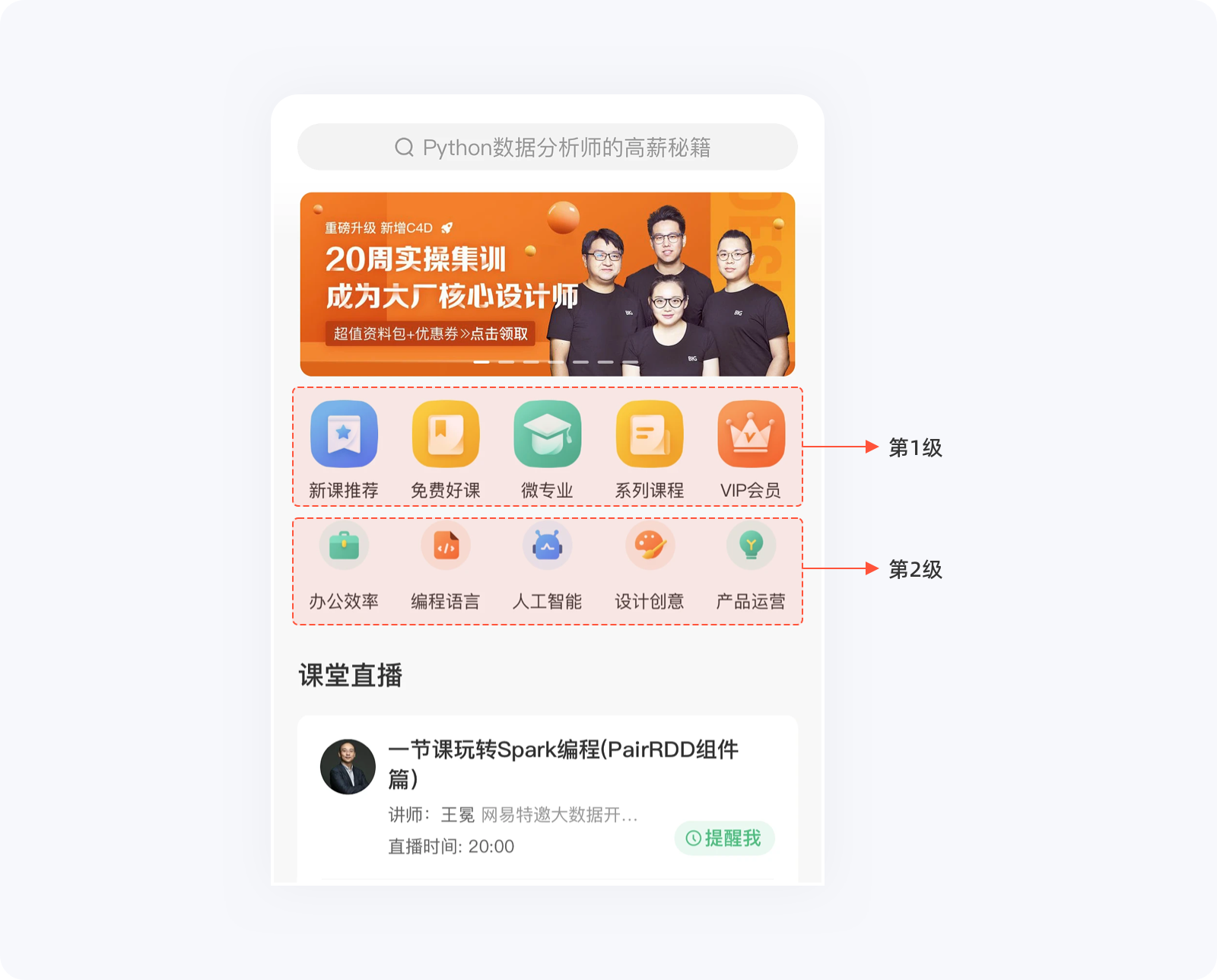 在設計過程中,如果沒有對功能層級進行劃分,一股腦地將所有功能入口平鋪的話,就需要用戶花費大量的時間和精力來查找需要的功能,無疑是一場災難。我們可以通過??硕蓙韮灮缑婀δ懿季郑鶕I務的重要性對功能入口進行分類組合,減少用戶的認知及理解成本,以便快速達到目的。