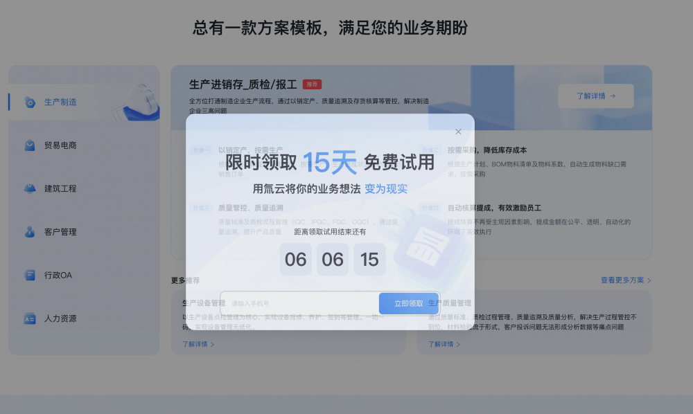 • 輕量化體驗(yàn)入口:提供 “免費(fèi)試用 15 天”“免費(fèi)體驗(yàn)核心模板” 等低門檻選項(xiàng)(案例的多處轉(zhuǎn)化按鈕),降低用戶嘗試的心理成本。