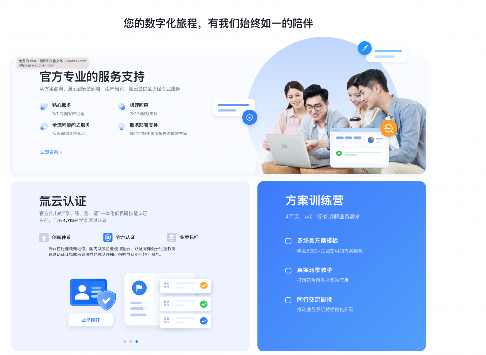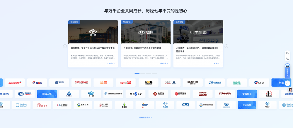 • 用案例 / 故事建立信任:像案例里的 “用戶故事”“客戶案例” 板塊,用真實(shí)人物 / 企業(yè)的使用場(chǎng)景(如 “35 歲地產(chǎn)人轉(zhuǎn)型”“云南建投數(shù)字化管理”),比單純的功能列表更有說服力。