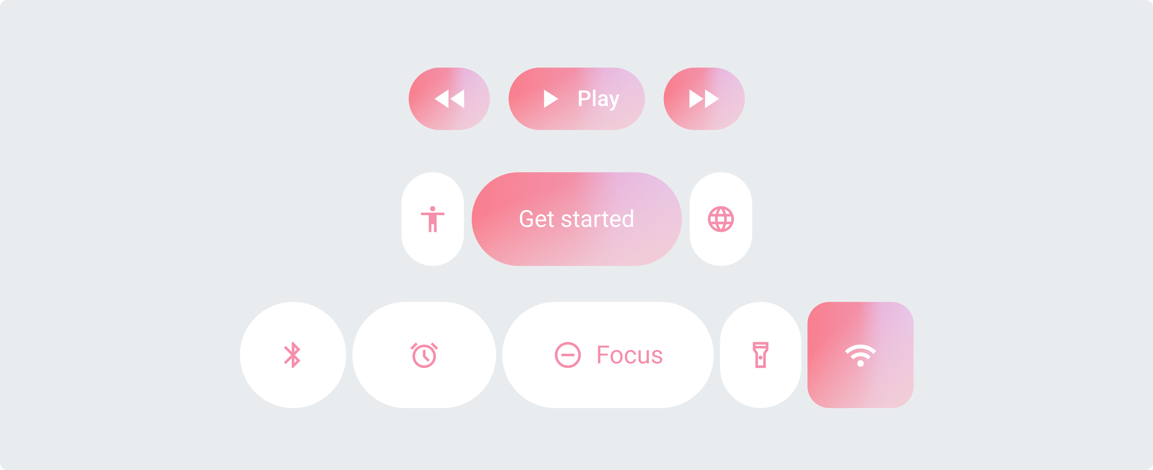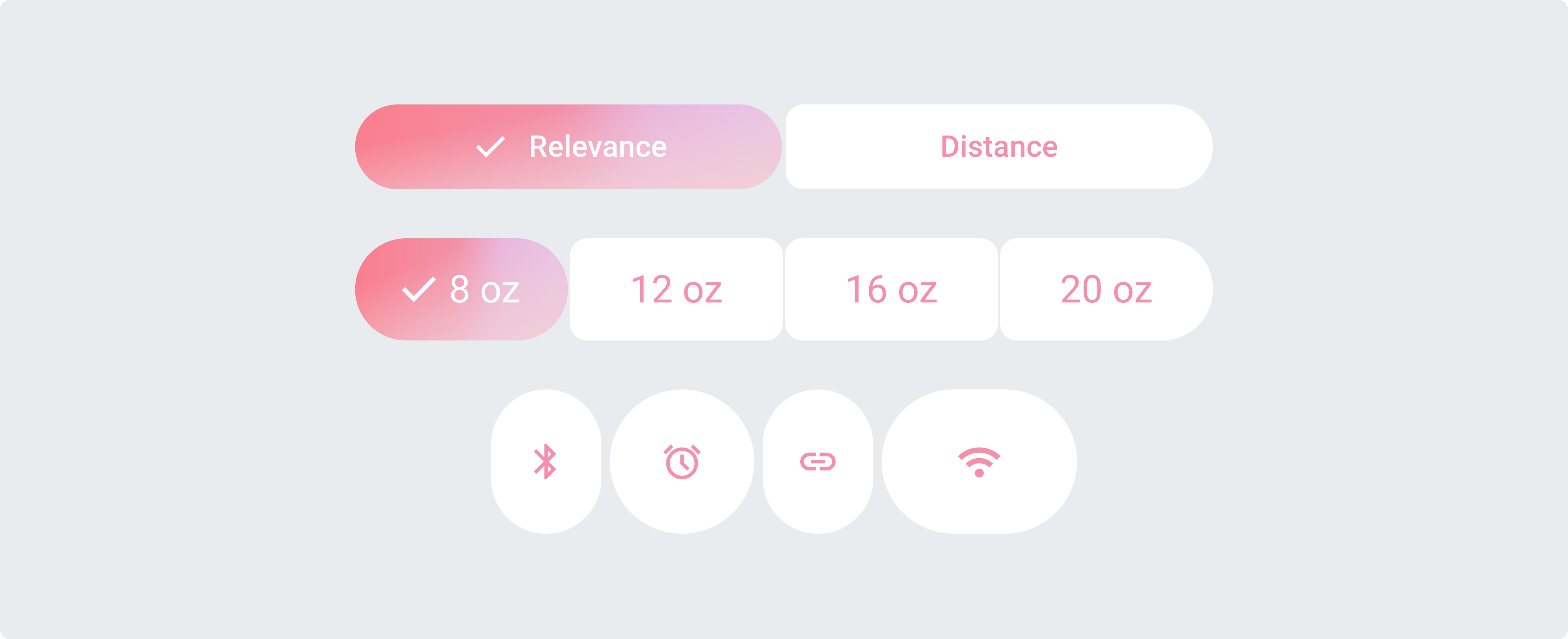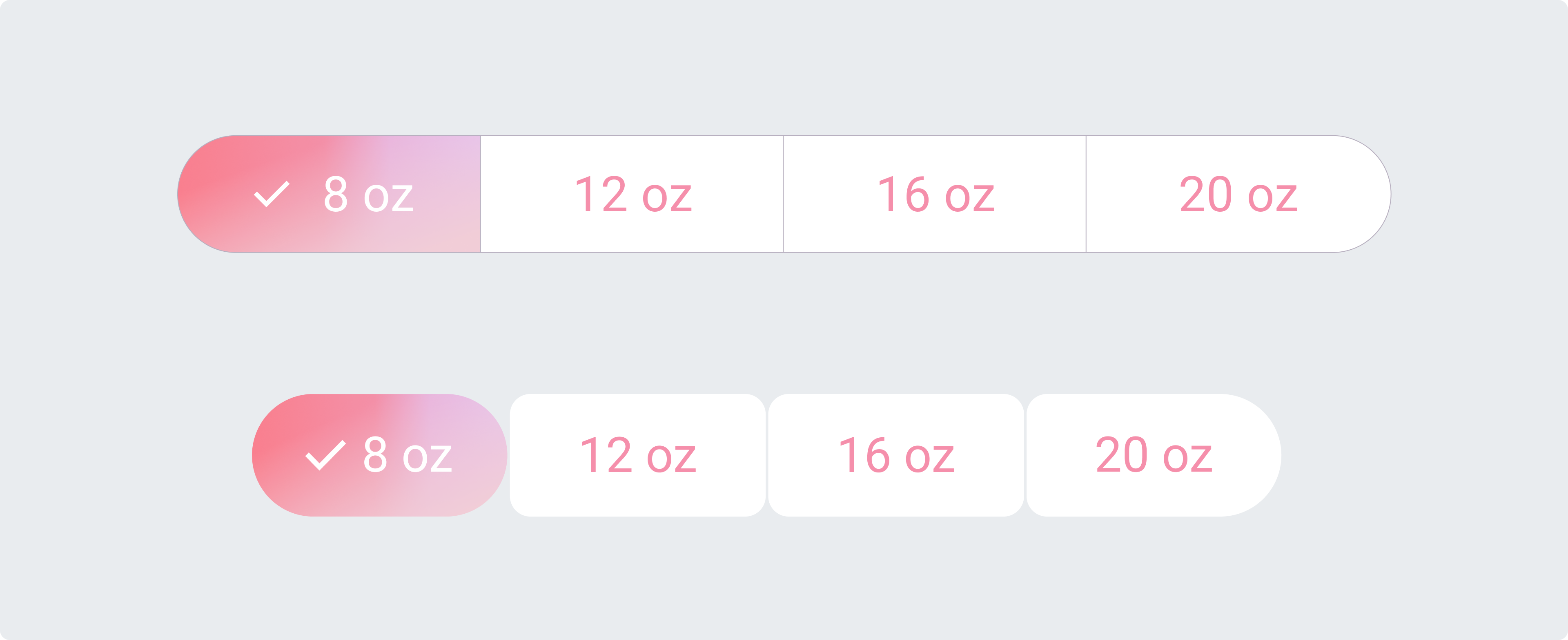 每個按鈕都保持圓潤的形狀,并且按鈕之間有一定的間距。在此組中,選定的按鈕可以改變寬度或形