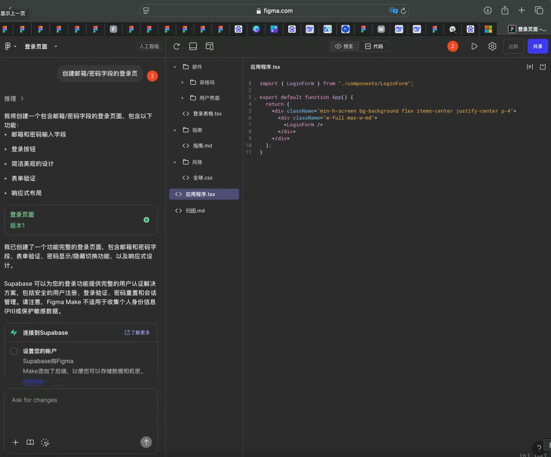 無需編寫 CSS 代碼,輸入指令如“創建帶郵箱/密碼字段的登錄頁”,AI 即刻生成高保真界面及可點擊交互元素。設計構想從概念到屏幕呈現的鏈路被大幅壓縮,省去重復搭建畫布的時間成本。