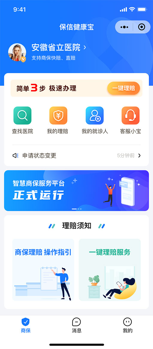 保信健康寶是聯(lián)合保險公司、醫(yī)院打造的智慧商保報案統(tǒng)一的線上理賠服務平臺,該平臺無需用戶線下跑腿,醫(yī)療數(shù)據(jù)采用區(qū)塊鏈技術(shù)和銀行級加密傳輸,數(shù)據(jù)安全雙保險。科技賦能理賠審核,極速提升理賠效率,理賠款直接轉(zhuǎn)入用戶指定銀行。