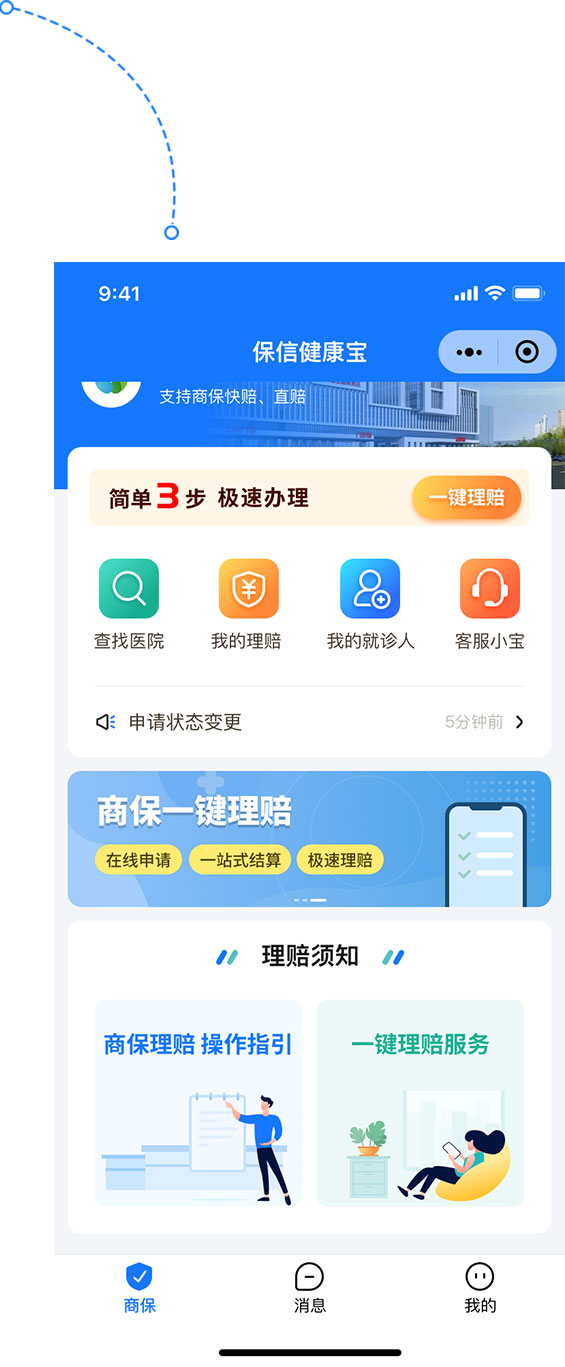保信健康寶小程序是智慧商保報案統(tǒng)一服務平臺,讓就醫(yī)更方便,讓理賠更便捷,理賠安全精準,服務便民惠民。其產(chǎn)品優(yōu)勢是一鍵申請,快速便捷、本人授權(quán),保護隱私、商保結(jié)算,安全放心、極速理賠,快速到賬。